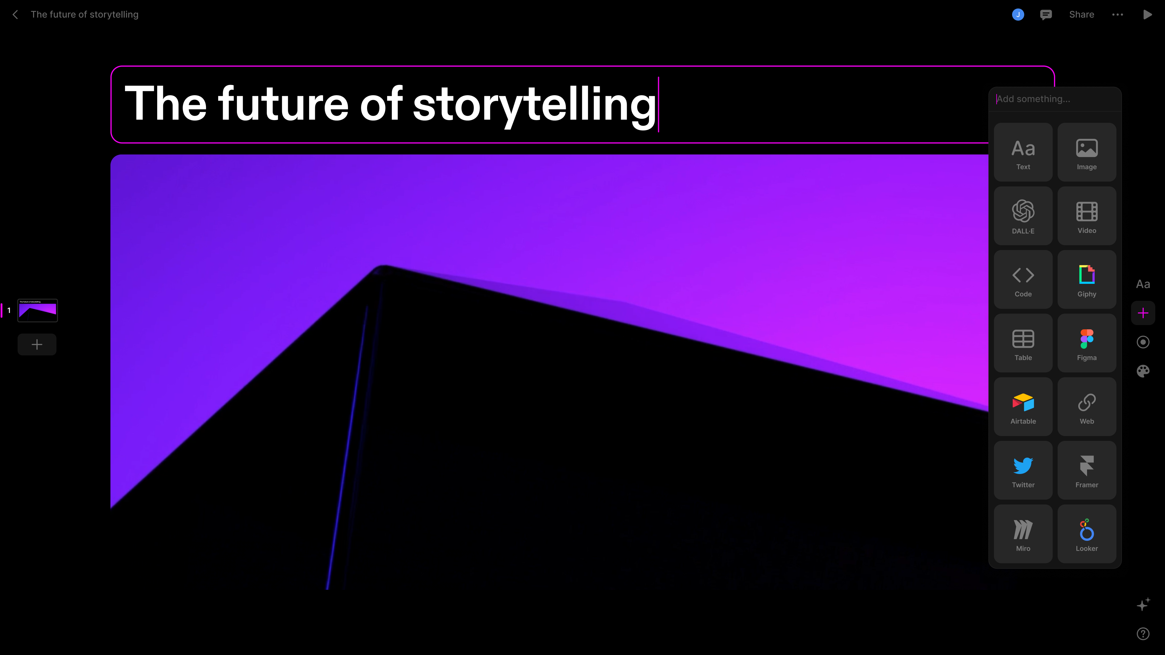 Our mission is to help anyone tell a compelling story. We’re building an AI-native storytelling format for work and ideas.