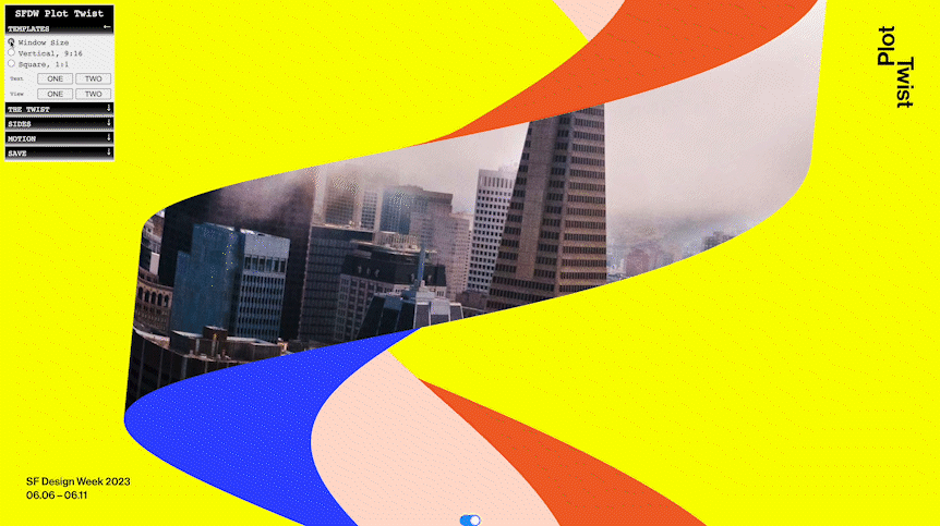 If you’re an approved Community Host for SF Design Week 2023, you’ll receive access to this browser-based tool. We encourage you to create your own plot twists to share out and use to promote your event. We look forward to seeing what you all come up with! Sorry, the twister tool is not available for attendees.