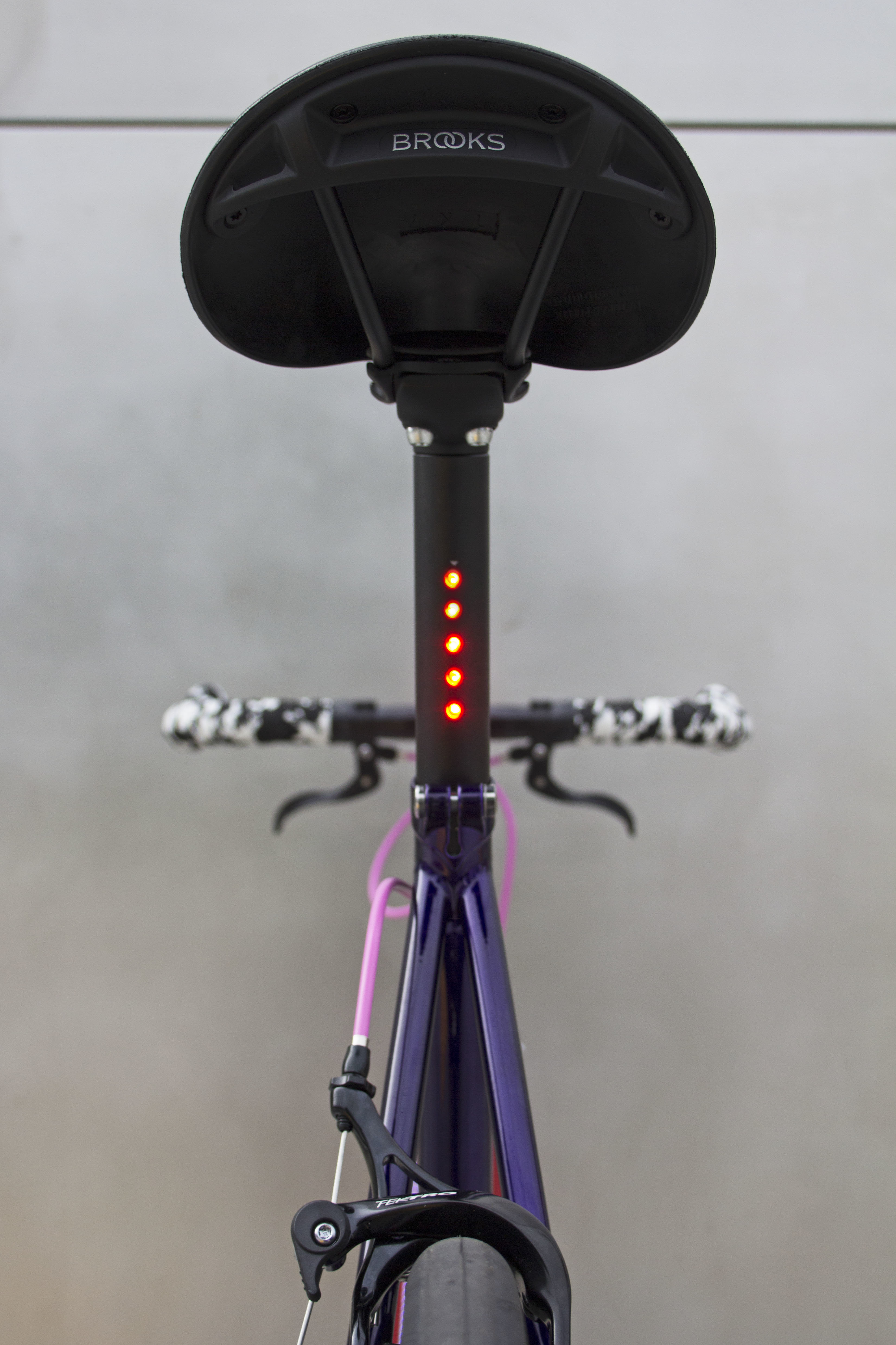 The frame’s deep iridescent purple serves as a base, and is contrasted by a lively collection of colors. The welcome addition of our signature integrated lighting to the mix ensures you’ll be seen both day and night.