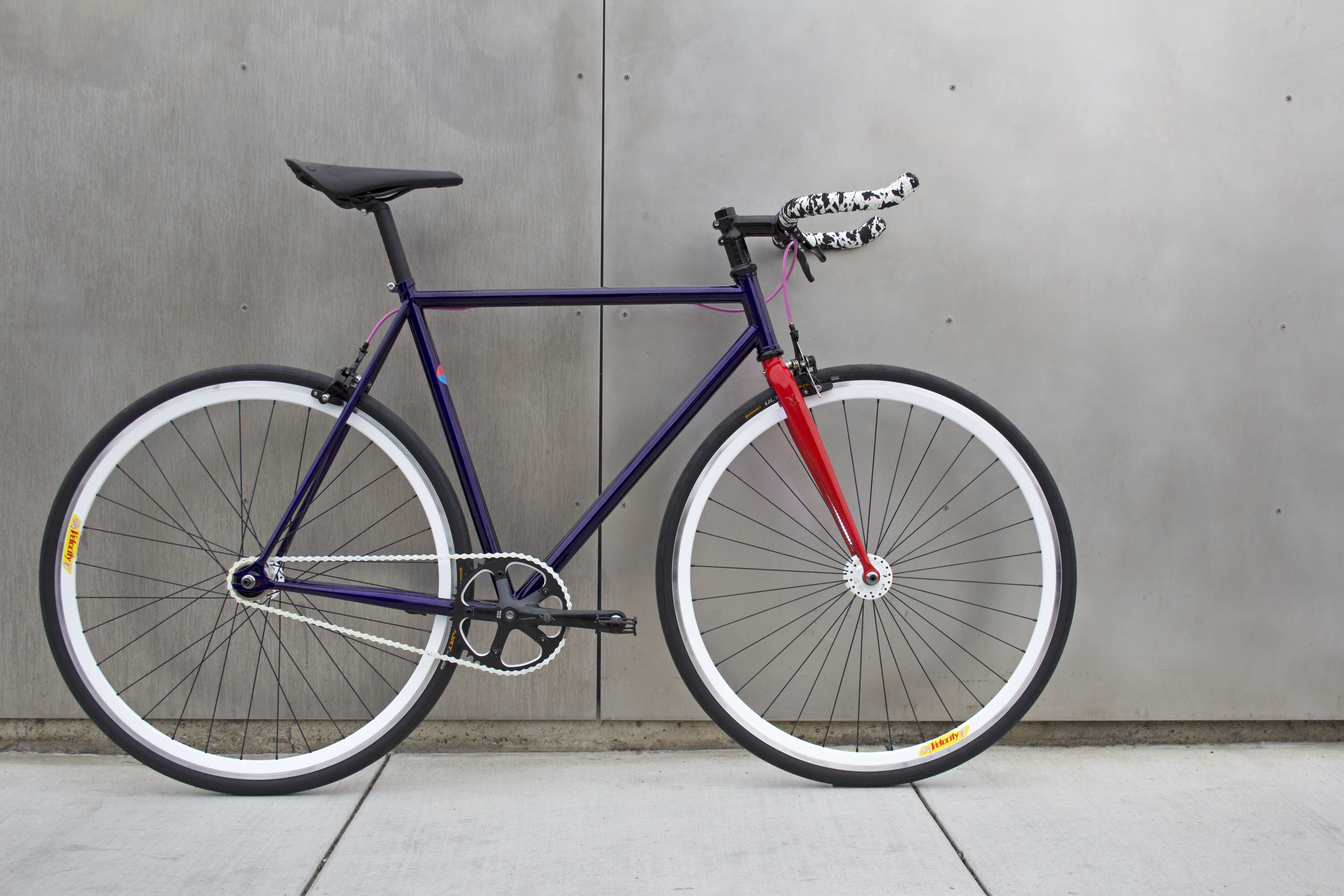 Any designer will tell you that every detail counts, right down to the custom printed decals and complimenting bubble gum-pink cable housing. The cherry on top, however, might just be the saddle. A Brooks C17 (designed in San Francisco by Ideo) adorns the seatpost, assuring you’ll ride comfortably no matter what the weather throws your way.
